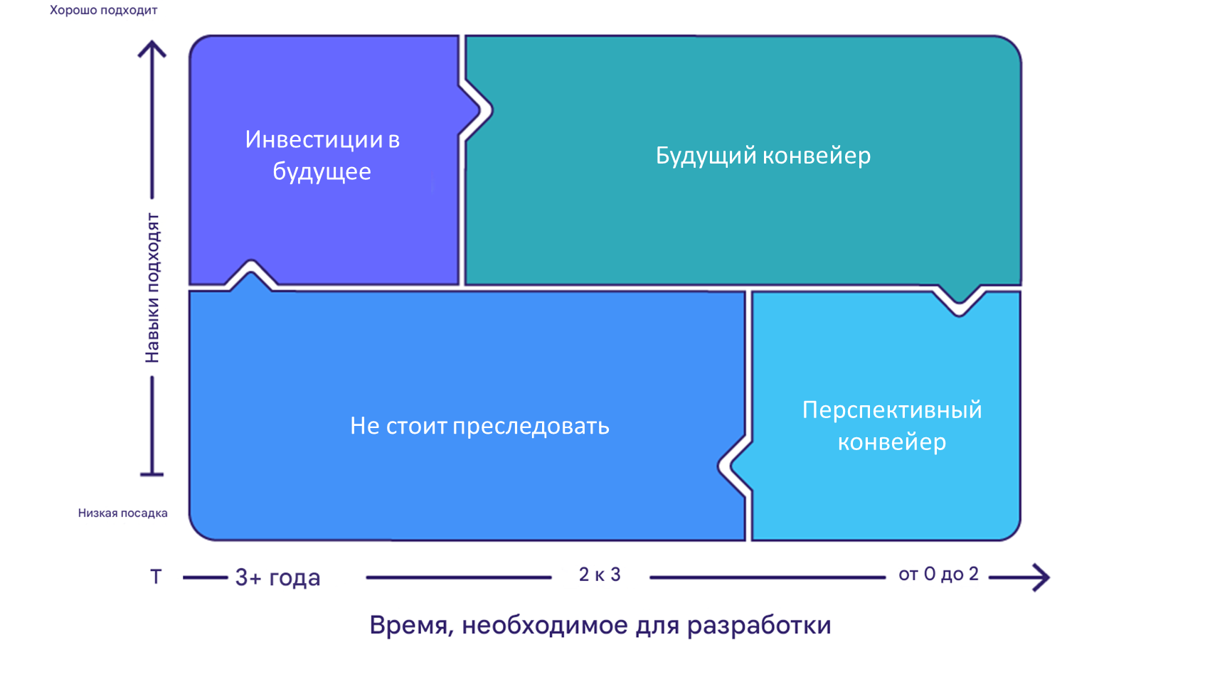 Используя эти критерии, вы можете распределить навыки по четырем квадрантам: